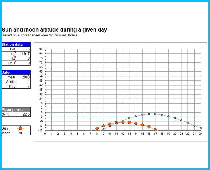 AstroExcel is borne from a life long love of Astronomy, Computing and Math's. My aim has been to provide astronomy related calculations in Excel using custom functions, so if you know how to use Excel then you should be able to use AstroExcel. AstroExcel won’t work using open office or other Excel compatible spreadsheet programs because to keep the usage simple I have created over 100 new functions in Excel based around my hobby of astronomy. The advantage of this approach is no knowledge of how these functions work is needed to use them, but a basic understanding of astronomy and Excel will help.