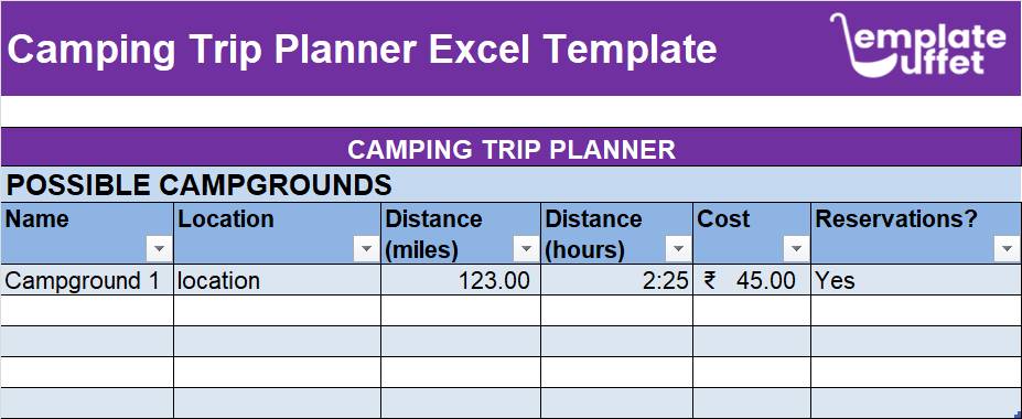 Whether you are an experienced camper, or a first-time camper, this template is the perfect way to prepare for your next camping trip. With its interactive features and user-friendly design, you can create the perfect camping trip and stay on top of your budget.