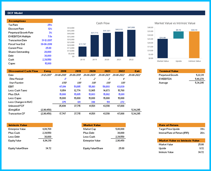 This DCF model template provides you with a foundation to build your own discounted cash flow model with different assumptions.